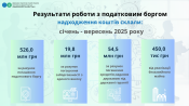 Результати роботи з податковим боргом за січень-вересень 2025 року