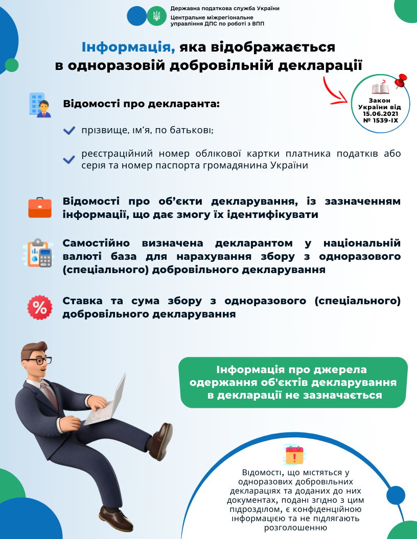 Відомості, які відображаються в одноразовій (спеціальній) добровільній декларації