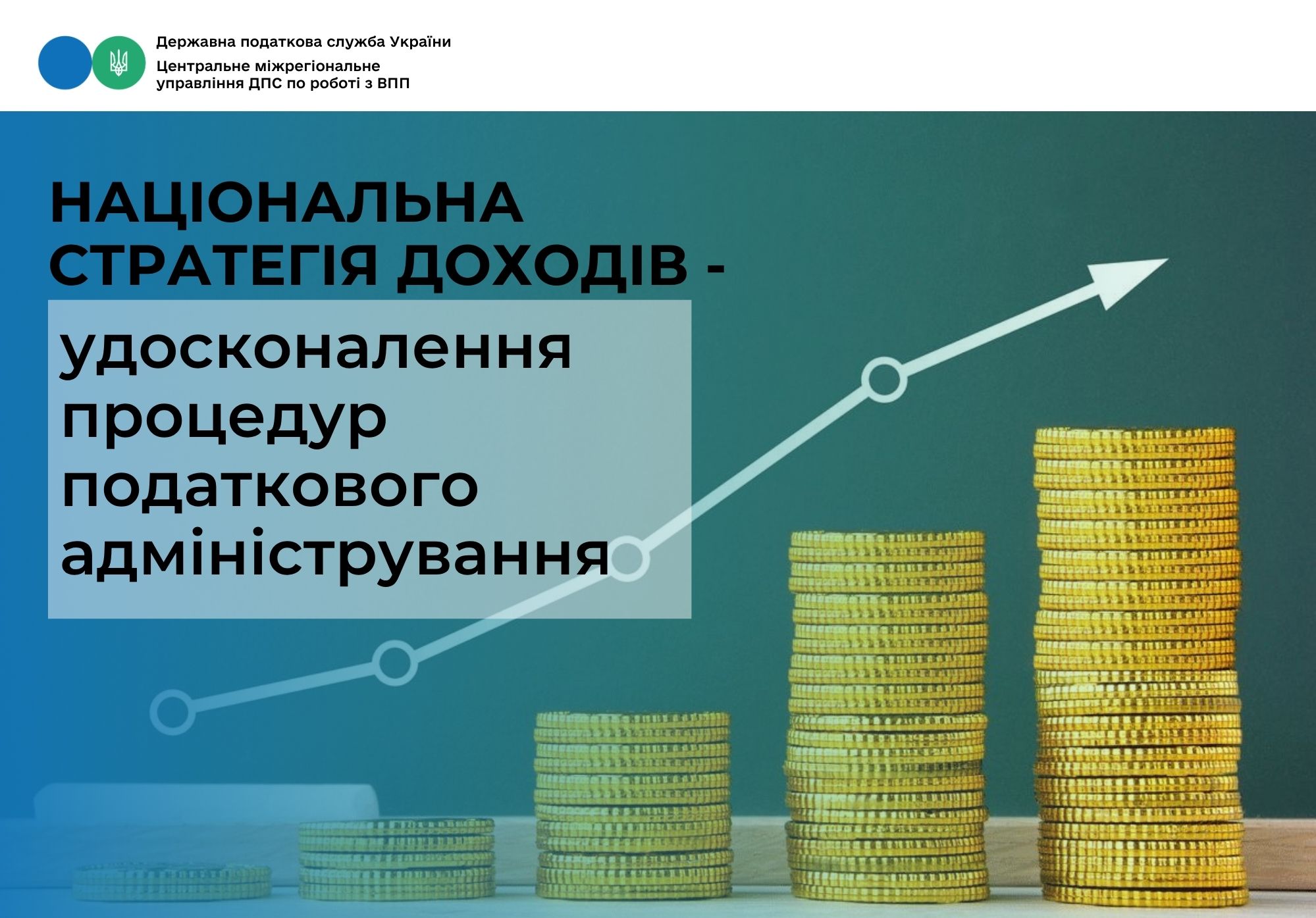 Центральне міжрегіональне управління ДПС по роботі з великими платниками податків інформує, що розпорядженням Кабінету Міністрів України від 27 грудня 2023 року № 1218-р схвалено Національну стратегію доходів.