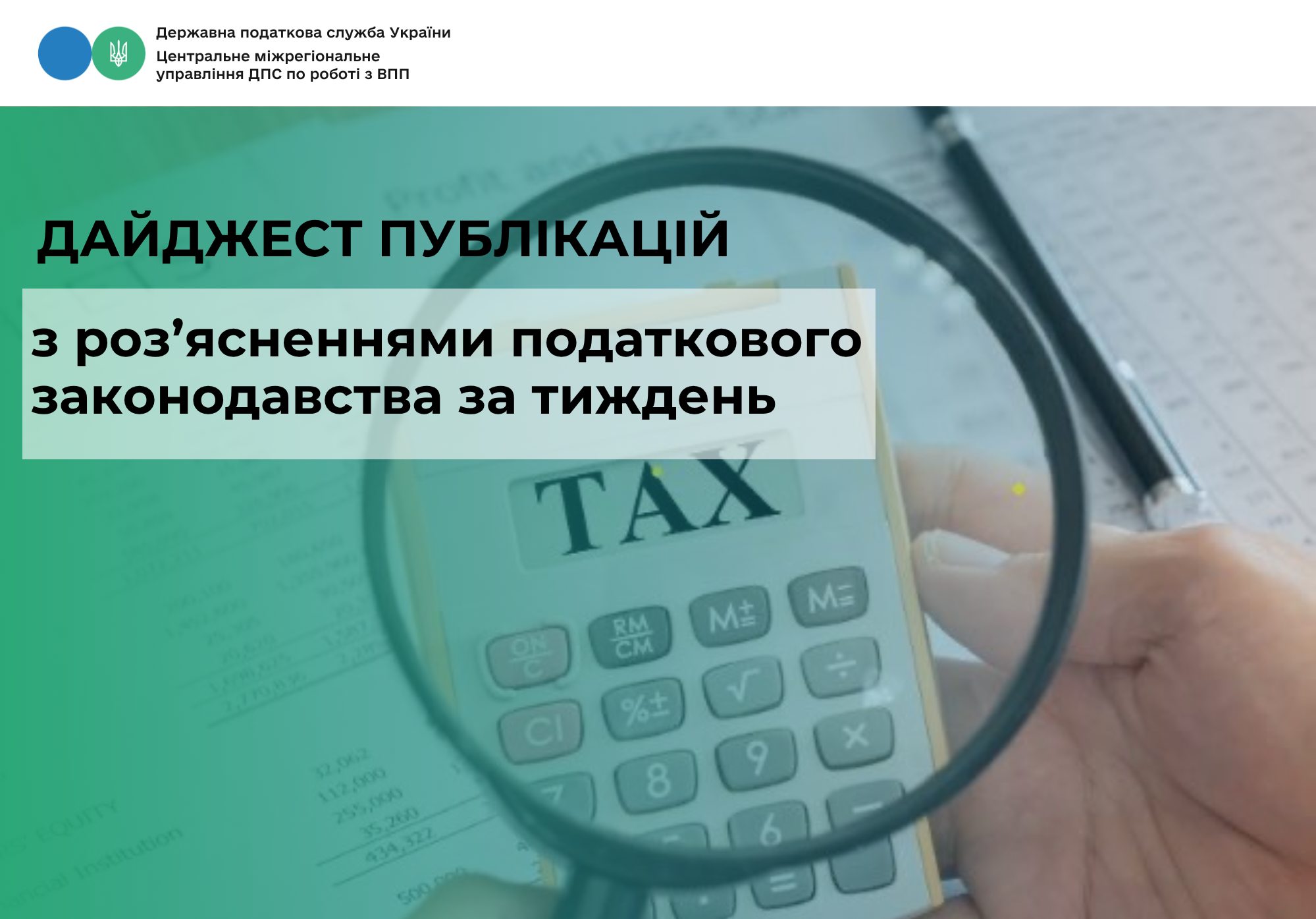 Державна податкова служба України надає дайджест публікацій з роз’ясненнями податкового законодавства, які були розміщені на вебпорталі ДПС протягом тижня.