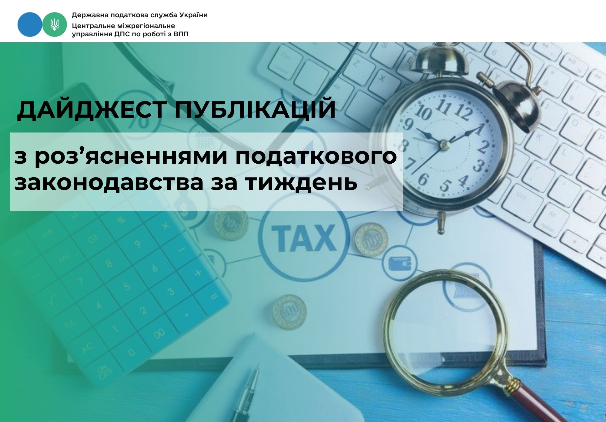 Державна податкова служба України надає дайджест публікацій з роз’ясненнями податкового законодавства, які були розміщені на вебпорталі ДПС протягом тижня.