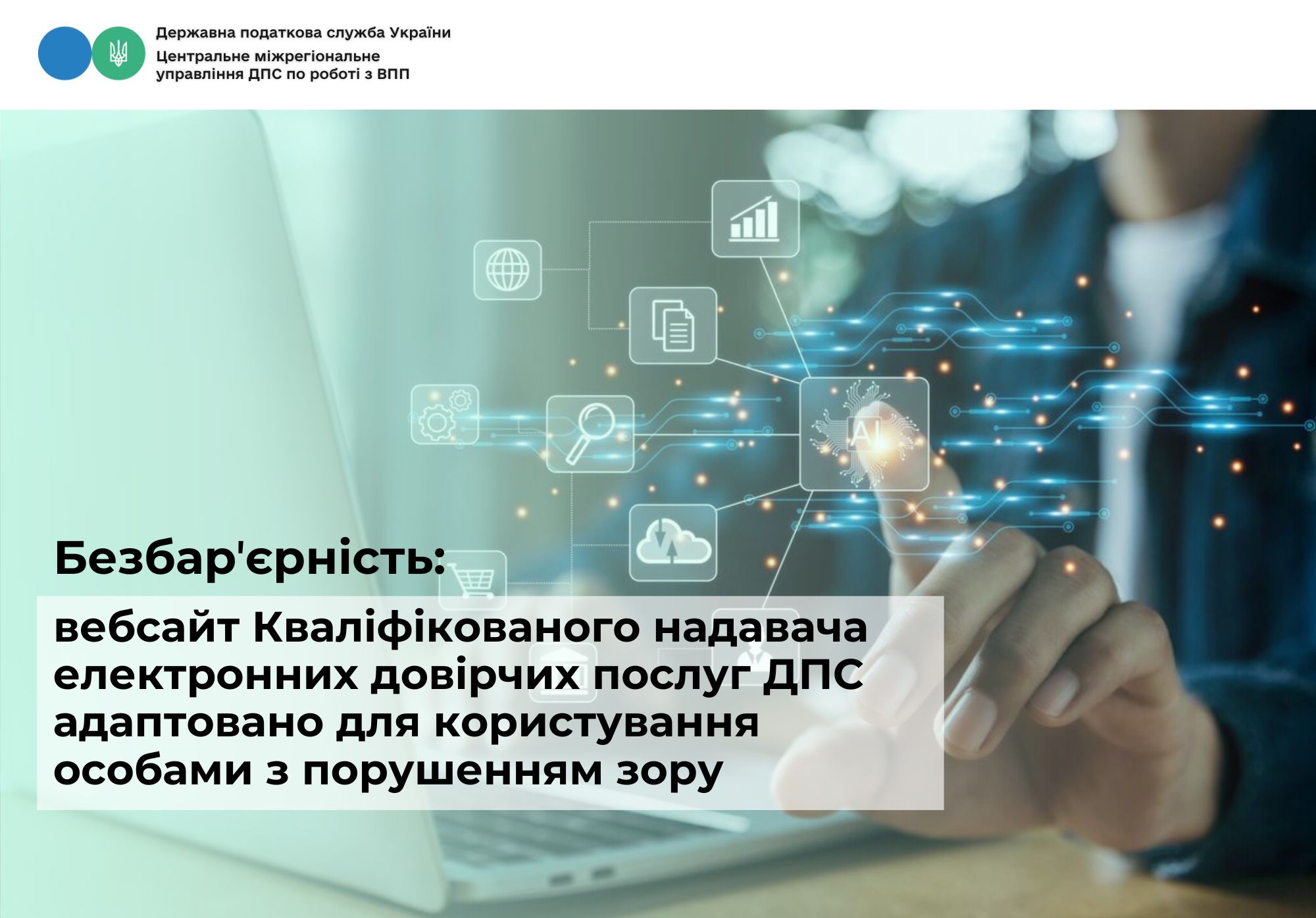 Центральне міжрегіональне управління ДПС по роботі з великими платниками податків нагадує, що для полегшення користування особам з порушенням зору оновлено вебсайт Кваліфікованого надавача електронних довірчих послуг ДПС (https://ca.tax.gov.ua).