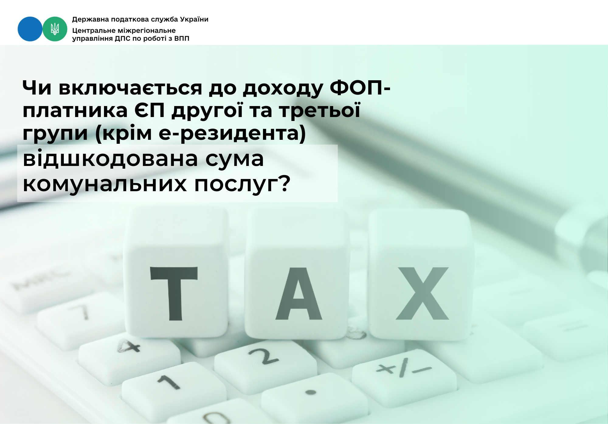 Враховуючи викладене, оскільки отримання фізичною особою – підприємцем – платником єдиного податку доходу у вигляді відшкодування суми комунально-житлових послуг не передбачає надання зазначених послуг таким підприємцем на користь юридичної особи або фізичної особи – підприємця (орендарів), то такий дохід не включається до доходу фізичної особи – підприємця, але оподатковується за загальними правилами, встановленими ПКУ для платників податку – фізичних осіб.