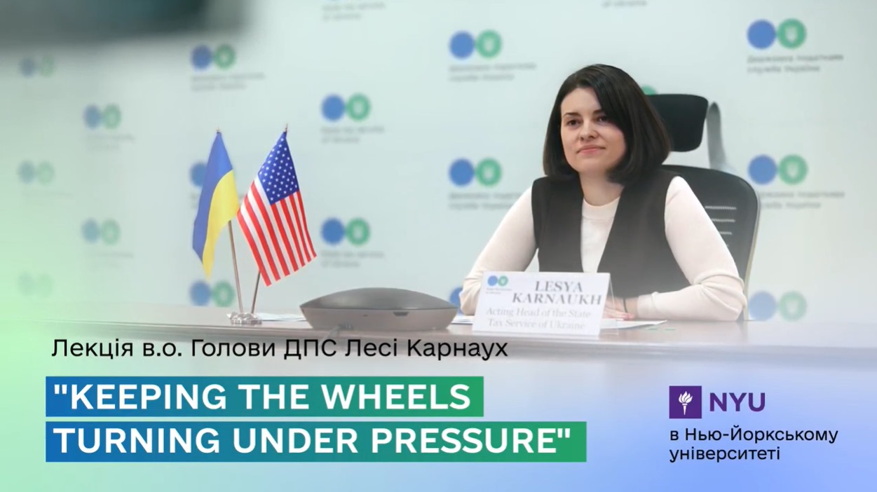 Про виклики, які поставила війна перед українською податковою системою, і унікальні рішення, які вдалось згенерувати для забезпечення виконання ключових функцій Служби, розповіла в. о. Голови ДПС Леся Карнаух під час онлайн-лекції в Нью-Йоркському університеті.
