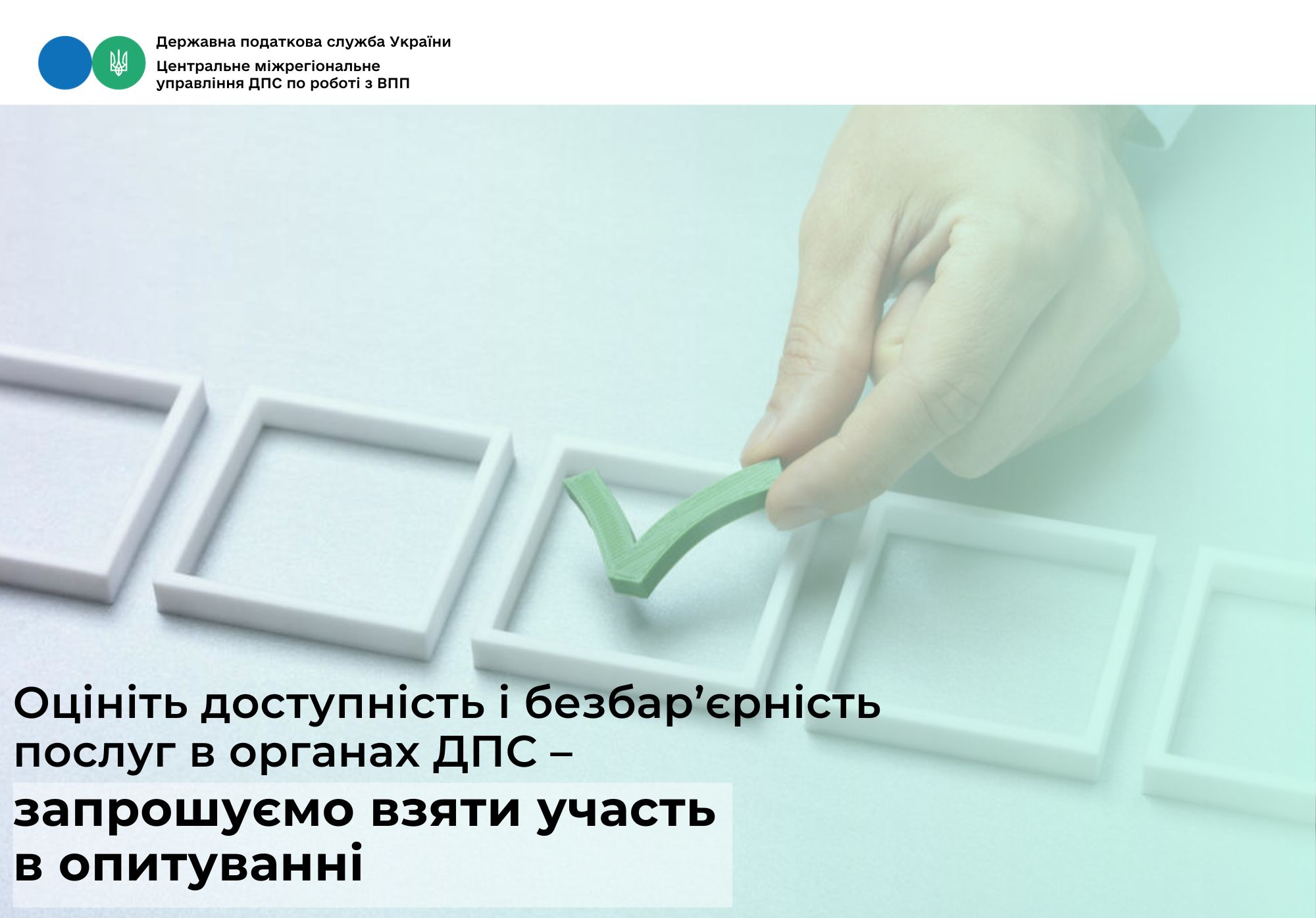 Мета опитування – з’ясувати чи задоволені потреби осіб з інвалідністю, осіб з інвалідністю внаслідок війни та інших маломобільних груп населення, а також спростити процес взаємодії з податковою.