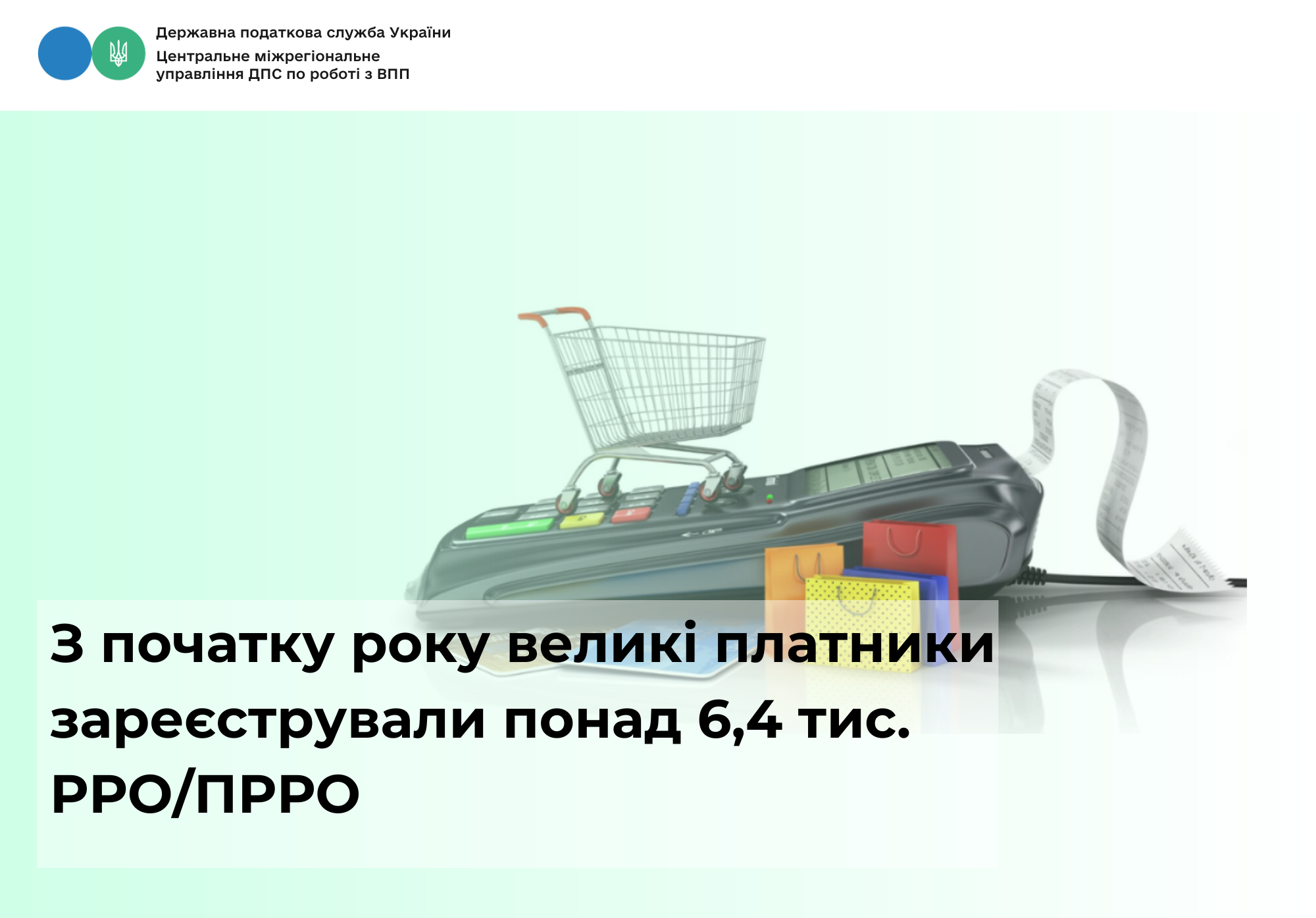 З початку року великі платники зареєстрували понад 6,4 тис. РРО та ПРРО