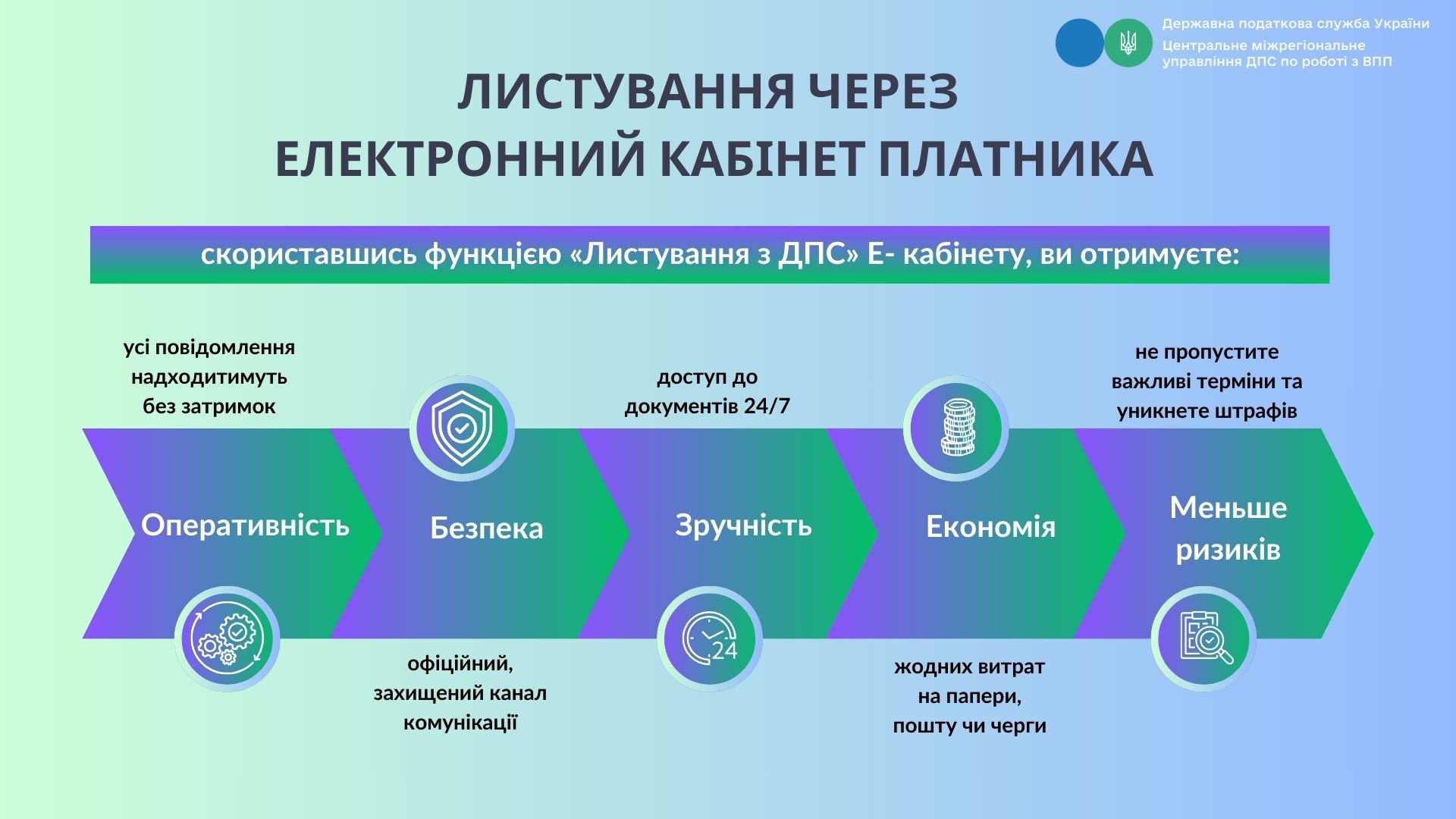 Отже,  скориставшись функцією «Листування з ДПС» електронного кабінету платника податків, ви отримуєте: