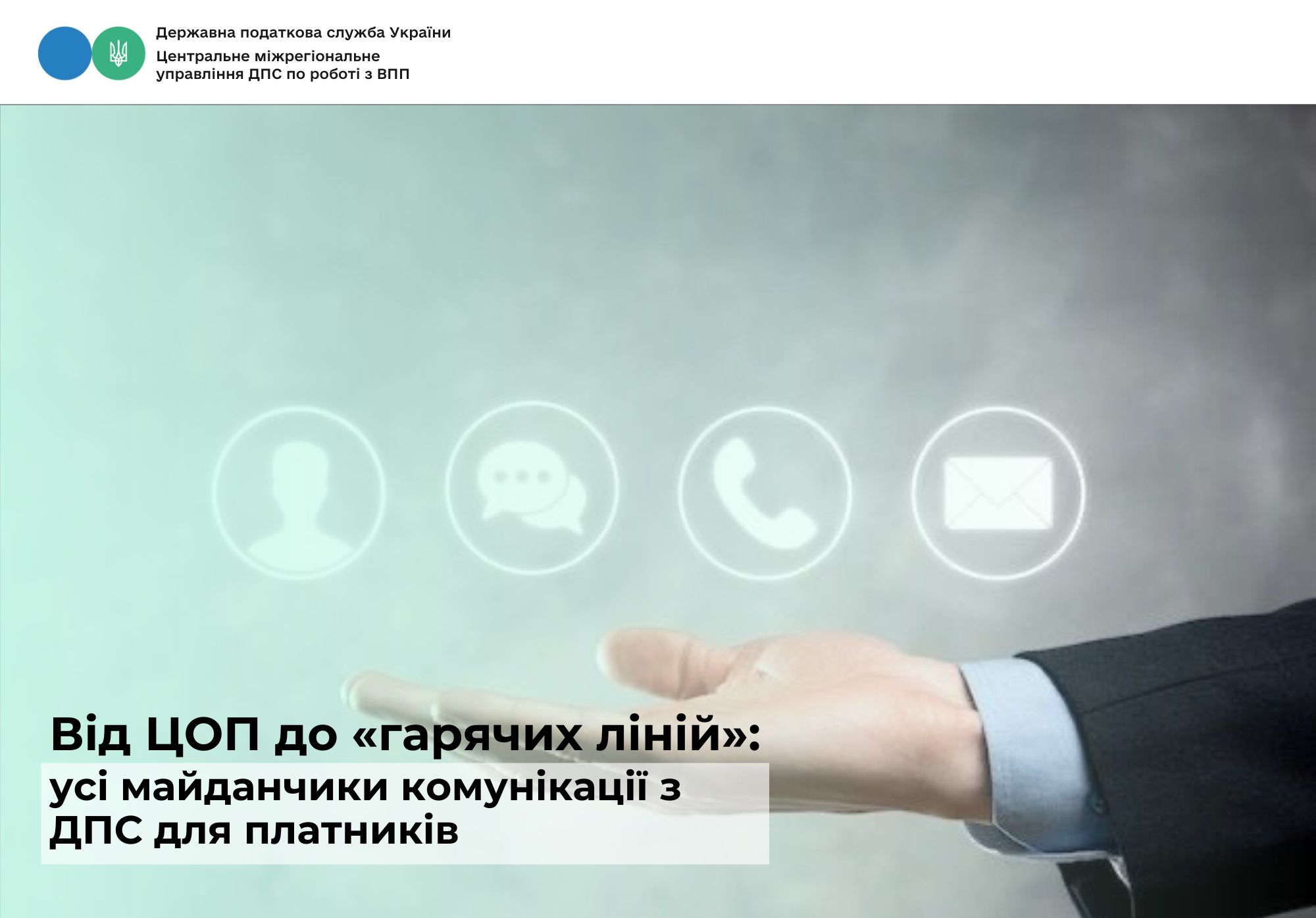 Центральне міжрегіональне управління ДПС по роботі з великими платниками податків нагадує, що ДПС має багато каналів зв’язку, щоб кожен міг отримати консультацію або послугу – особисто, телефоном чи онлайн.