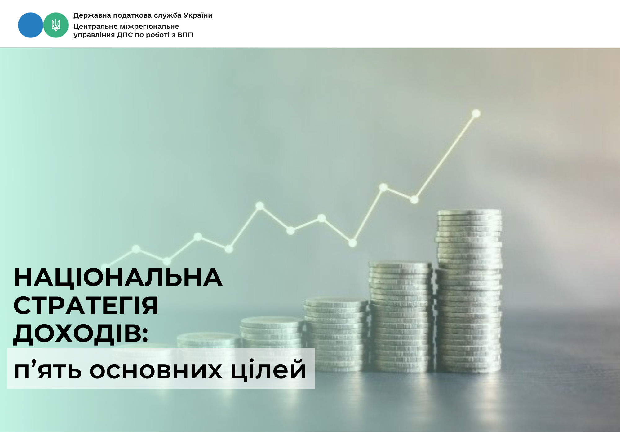 Центральне міжрегіональне управління ДПС по роботі з великими платниками податків інформує, що розпорядженням Кабінету Міністрів України від  27 грудня 2023 року № 1218-р  схвалено Національну стратегію доходів.
