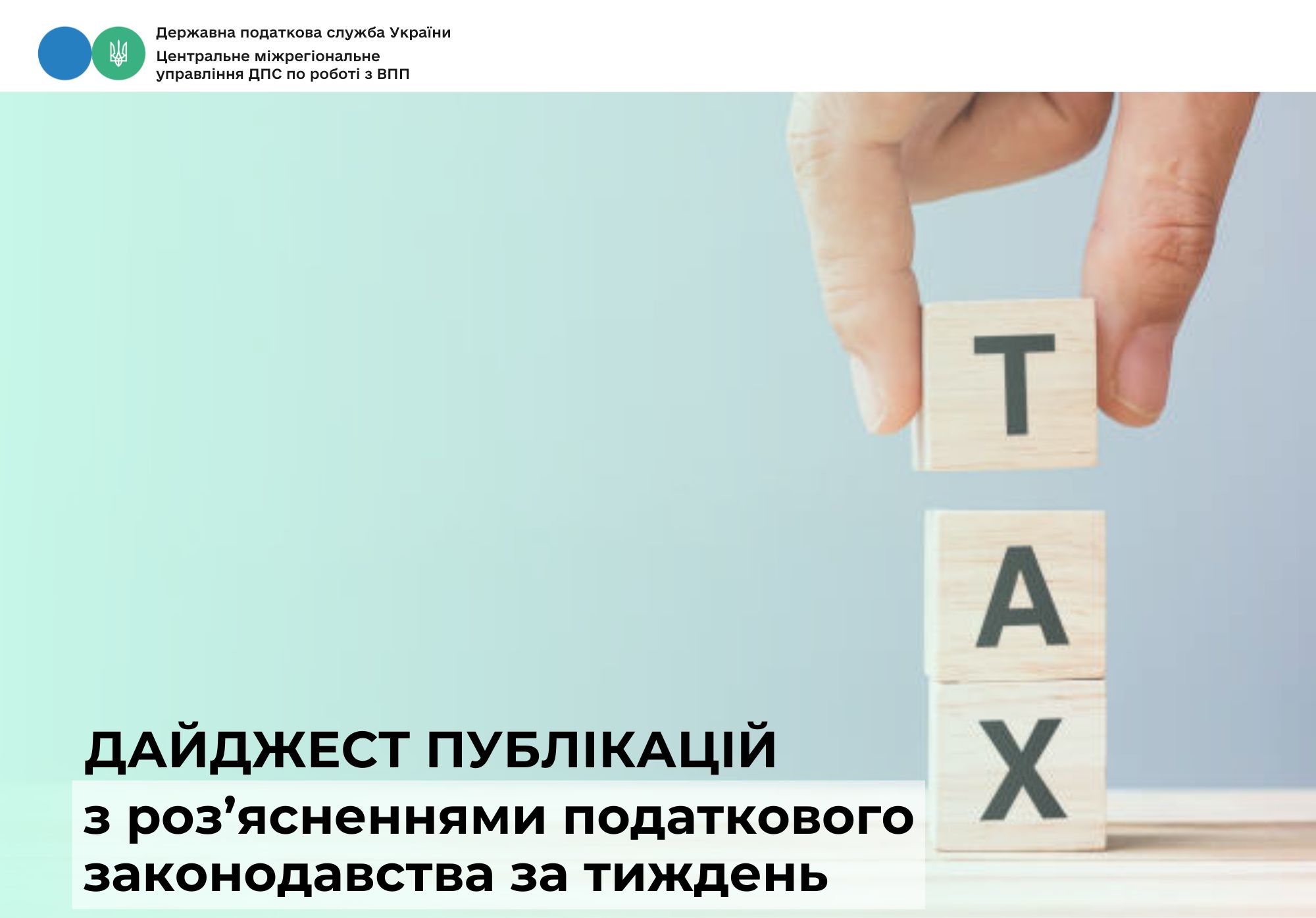 Державна податкова служба України надає дайджест публікацій з роз’ясненнями податкового законодавства, які були розміщені на вебпорталі ДПС протягом тижня.