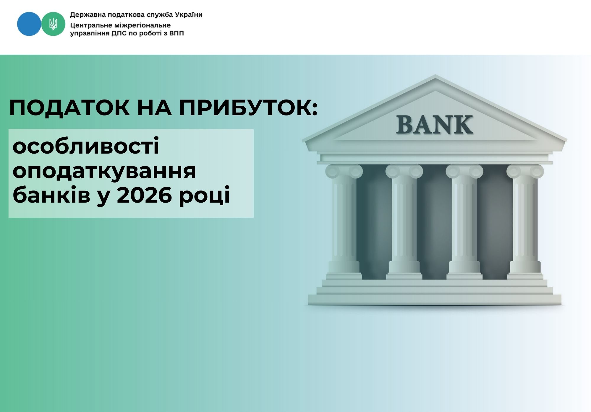 Центральне міжрегіональне управління ДПС по роботі з великими платниками податків нагадує, що у 2026 році для банків запроваджено нову базову ставку податку на прибуток підприємств у розмірі 50 %. Це передбачено Законом України від 03.12.2025 № 4698, яким внесено зміни до Податкового кодексу України та визначено особливості оподаткування банків.