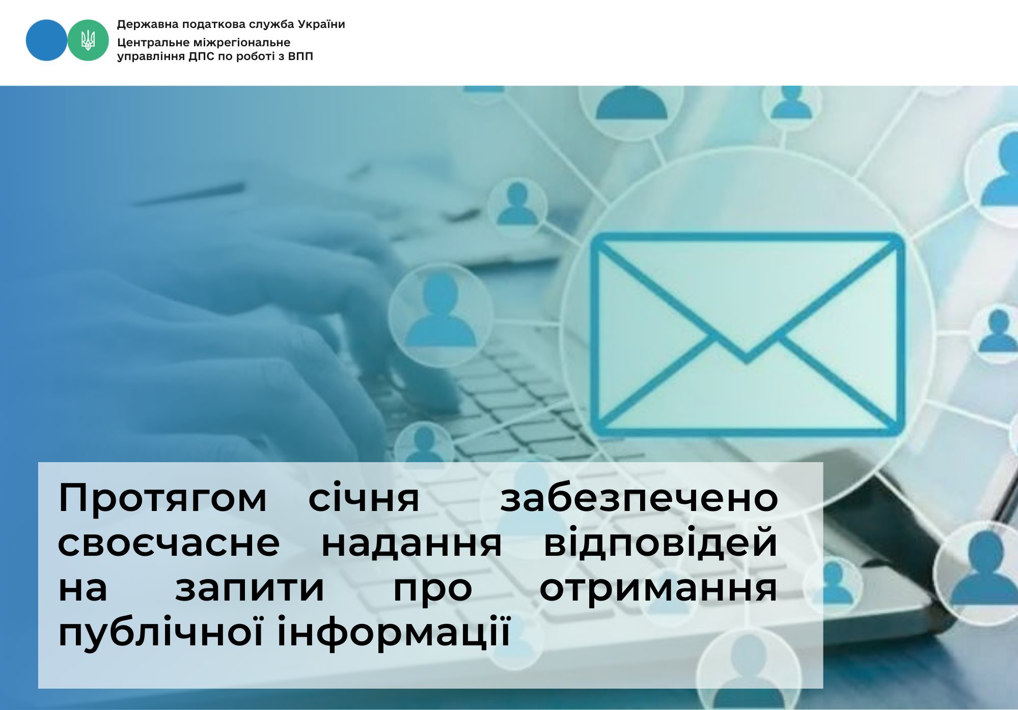 Протягом січня 2026 року Центральним міжрегіональним управлінням ДПС по роботі з великими платниками податків отримано та забезпечено своєчасне надання відповідей на 3 запити про отримання публічної інформації; за відповідний період 2025 року - 3 запити.