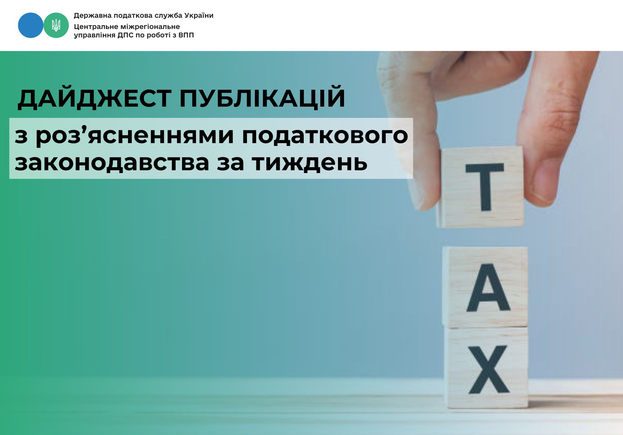 Державна податкова служба України надає дайджест публікацій з роз’ясненнями податкового законодавства, які були розміщені на вебпорталі ДПС протягом тижня.