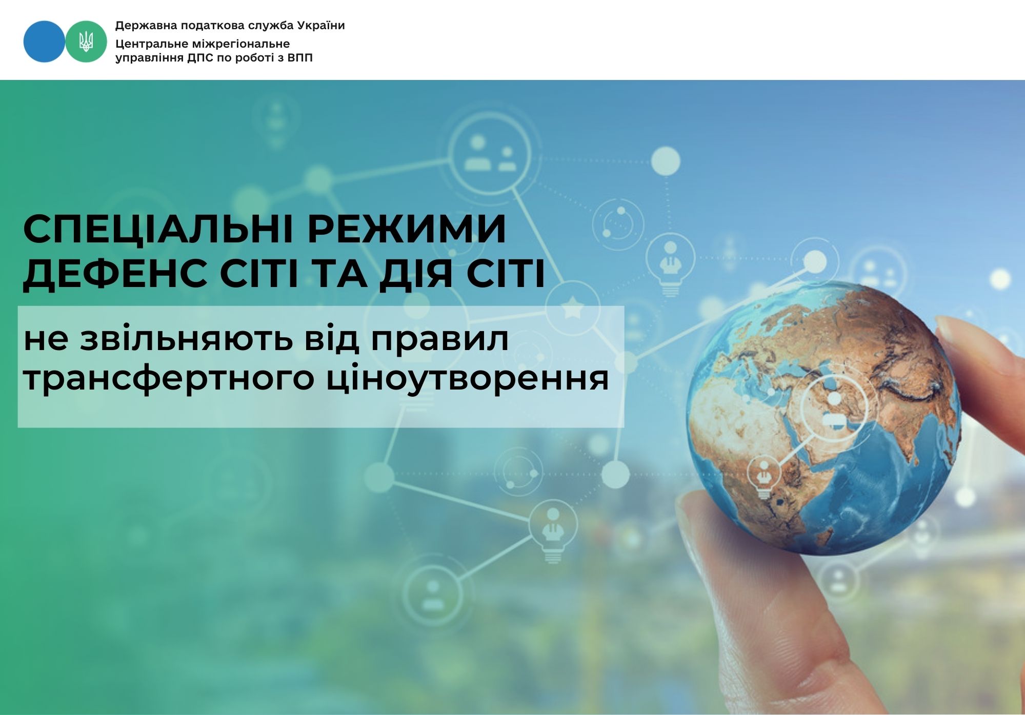 Центральне міжрегіональне управління ДПС по роботі з великими платниками податків нагадує, що запровадження спеціальних правових режимів Дефенс Сіті та Дія Сіті не скасовує вимог Податкового кодексу щодо дотримання принципу «витягнутої руки» при здійсненні контрольованих операцій та звітування з трансфертного ціноутворення.