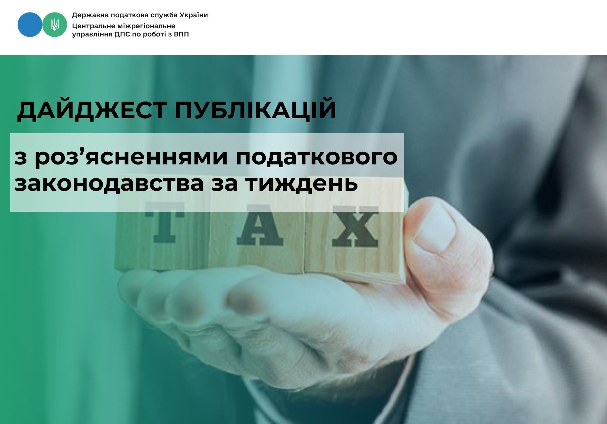 Державна податкова служба України надає дайджест публікацій з роз’ясненнями податкового законодавства, які були розміщені на вебпорталі ДПС протягом тижня.