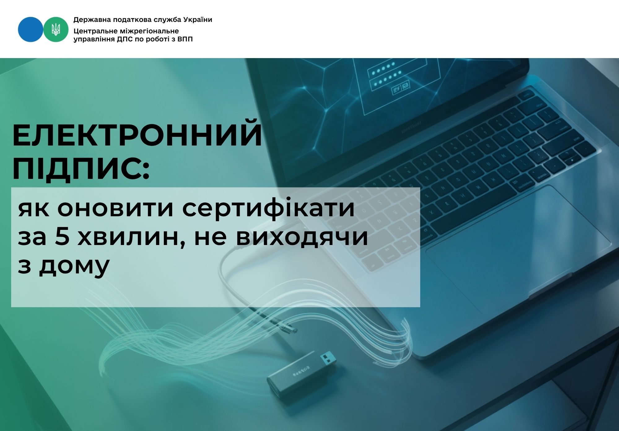 Центральне міжрегіональне управління ДПС по роботі з великими платниками податків звертає увагу, якщо термін дії ваших кваліфікованих сертифікатів відкритих ключів добігає кінця, вам не обов’язково знову відвідувати представництво Кваліфікованого надавача електронних довірчих послуг Державної податкової служби України (КНЕДП ДПС). А також, інформуємо, що ДПС України повідомила, що оновити їх можна дистанційно за кілька хвилин.