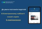 Державною податковою службою України з метою підвищення рівня інформування платників податків про суми помилково сплачених податкових платежів, єдиного внеску розроблено та впроваджено новий сервіс «Е-повідомлення».