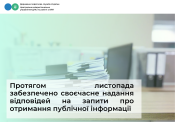 Протягом листопада Центральним управлінням отримано та забезпечено своєчасне надання відповідей на запити про отримання публічної інформації