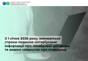 З 1 січня 2026 року змінюються строки подання нотаріусами інформації про посвідчені договори та видані свідоцтва про спадщину