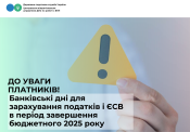 Центральне міжрегіональне управління ЛПС по роботі з великими платниками податків нагадує, що станнім банківським днем для зарахування податків, зборів та сум єдиного внеску у 2025 році буде 30 грудня відповідно до Регламенту роботи органів Казначейства.