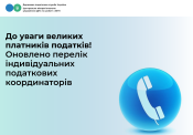 Центральне міжрегіональне управління ДПС по роботі з великими платниками податків інформує про оновлення переліку індивідуальних податкових координаторів.